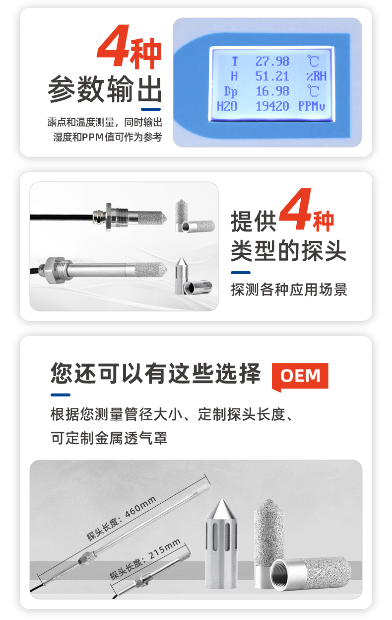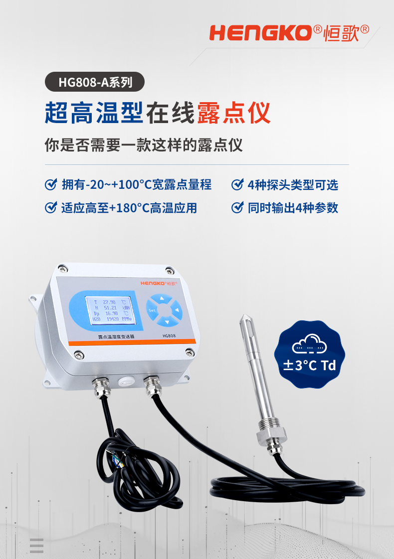 &耐180°C高温传感器,露点量程-20~100°C,覆盖+80~+180°C高温范围,长期稳定性行业领先。
