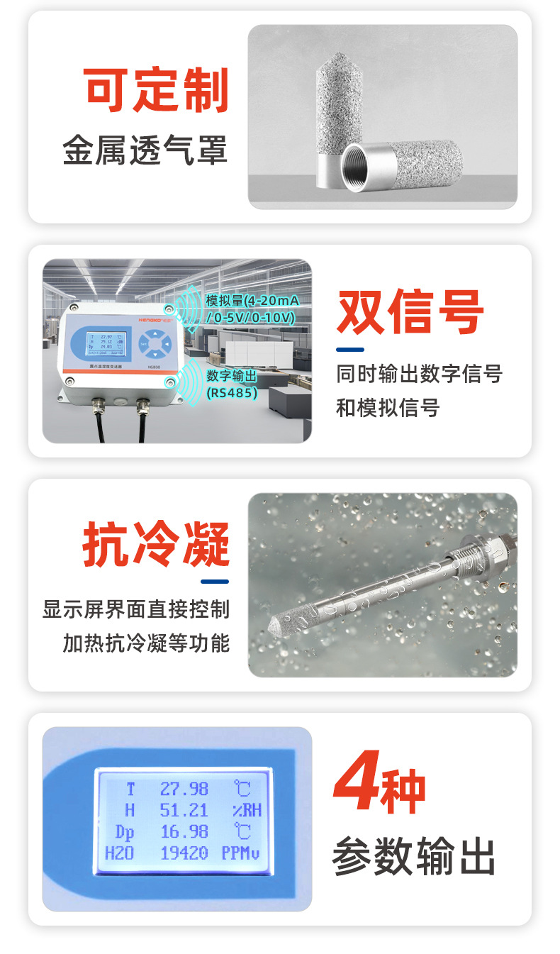 通过工业级抗污染设计,耐受油汽、微尘、化学气体侵蚀,年漂移量控制在<1%RH/年,广泛应用于高温干燥窑、石化烟气处理、工业燃烧系统等传统传感器难以胜任的严苛场景。